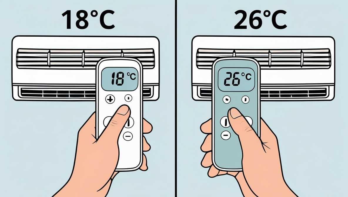 처음 에어컨을 켤 때, 희망 온도를 18~20도로 낮추고 풍량을 강하게 설정해 실내 온도를 빠르게 떨어뜨리세요. 그 후, 실내가 충분히 시원해졌다면 희망 온도를 26~27도로 다시 올리고 풍량을 약하게 설정하여 **끄지 않고 계속 켜두는 것**이 훨씬 효율적입니다. 인버터 모터가 최소한의 전력으로 현재 온도를 '유지'해주기 때문입니다.